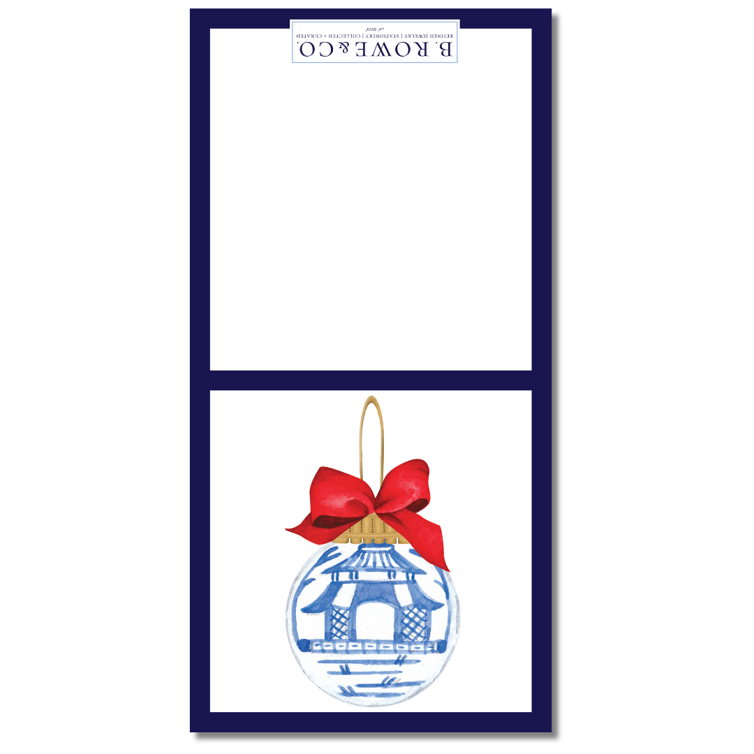 Regular price $20.00Personalized notepads from B. Rowe & Co. are a delightful addition to your desktop at home, work, and anywhere else in between all season long! Each colorful notepad features our best-selling chinoiserie Christmas tree design and can be personalized with up to three (3) names to suit your needs. Our notepads are thoughtfully wrapped in clear cellophane, finished with our signature packaging and arrive ready to enjoy or give immediately!