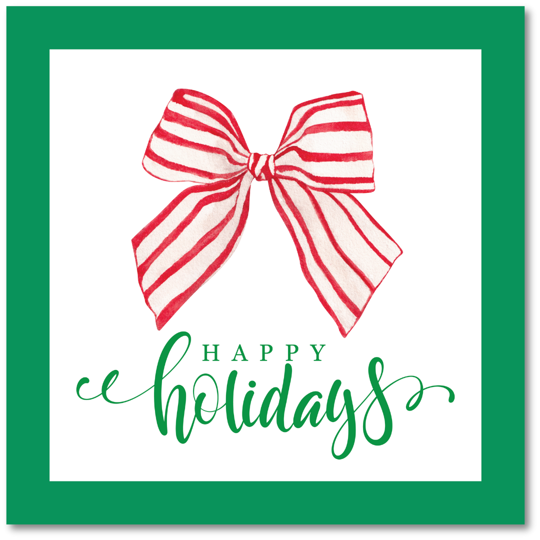 Regular price $15.00Elevate your holiday entertaining and gift giving with paper and stationery gifts from B. Rowe & Co.! Our Red + White Happy Holidays Gift Tags are new for the holiday season with our cheerful red and white striped bow, vivid green trim, and whimsical typeface.
