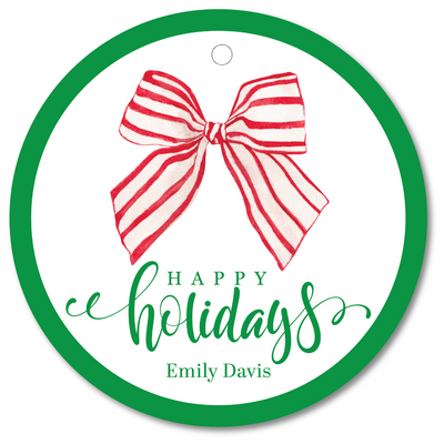 RED + WHITE BOW HAPPY HOLIDAYS PERSONALIZED GIFT TAGS | BOWS OF HOLLY