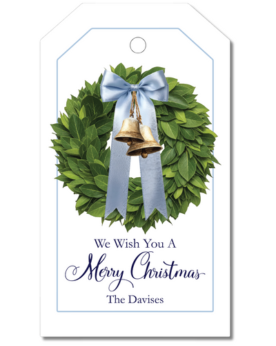 BOXWOOD WREATH + BELLS PERSONALIZED GIFT TAGS | HAMPTONS HOLIDAY
