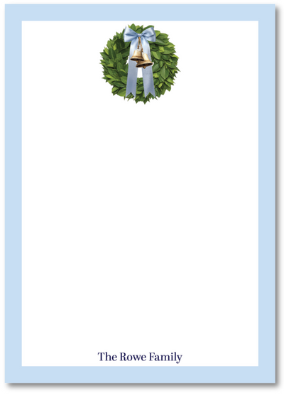 BOXWOOD WREATH + BELLS PERSONALIZED NOTEPAD | HAMPTONS HOLIDAY