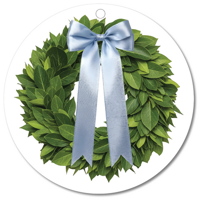 BOXWOOD WREATH + BLUE BOW ROUND GIFT TAGS | HAMPTONS HOLIDAY