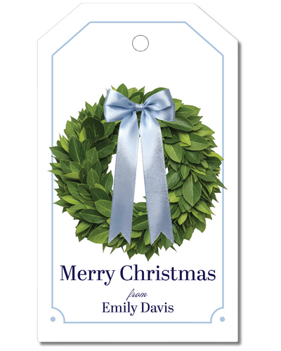 BOXWOOD WREATH + BLUE BOW PERSONALIZED GIFT TAGS | HAMPTONS HOLIDAY