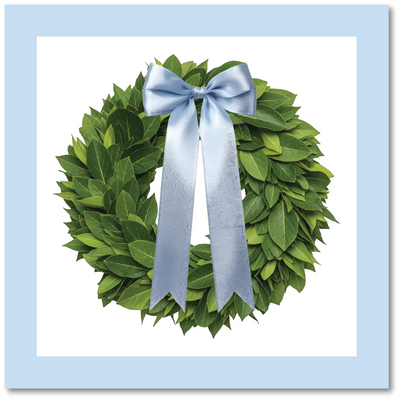 BOXWOOD WREATH + BLUE BOW ENCLOSURE CARDS | HAMPTONS HOLIDAY