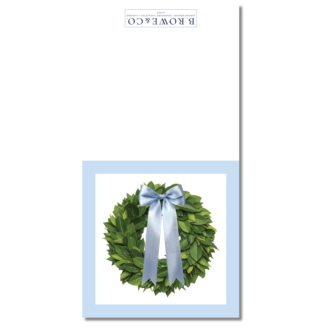 BOXWOOD WREATH + BLUE BOW PERSONALIZED NOTEPAD | HAMPTONS HOLIDAY