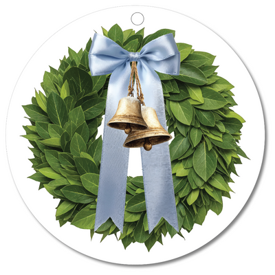 BOXWOOD WREATH + BELLS ROUND GIFT TAGS