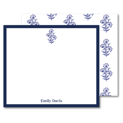 Each note card features our exclusive digital artwork and pattern in shades of light and navy blue, and is personalized to suit your needs. Our notecards are thoughtfully wrapped in clear cellophane and finished with our signature label. They are an ideal gift for friends, your favorite teacher or hostess, or just because!