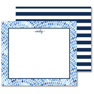 BLUE MOSAIC + NAVY STRIPES PERSONALIZED FLAT NOTE CARDS | PERSONALIZED FLAT NOTE CARDS