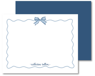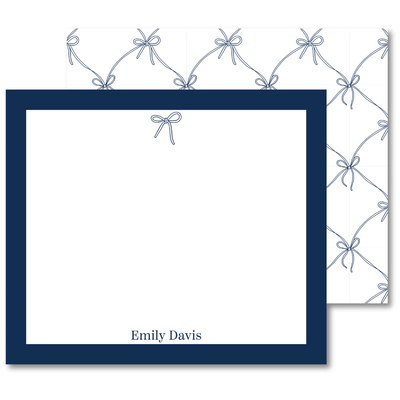 NAVY BOWS + RIBBON PERSONALIZED FLAT NOTE CARDS | PERSONALIZED FLAT NOTE CARDS