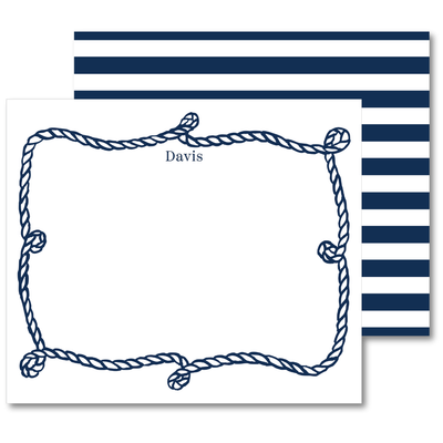 NAVY ROPE + STRIPES PERSONALIZED FLAT NOTE CARDS | PERSONALIZED FLAT NOTE CARDS