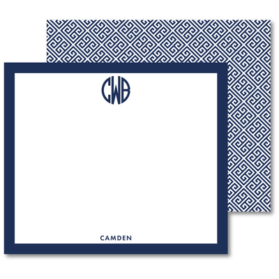 NAVY GREEK KEY MONOGRAMMED FLAT NOTE CARDS | PERSONALIZED FLAT NOTE CARDS