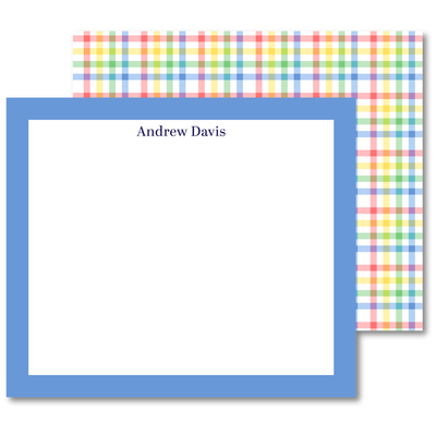PASTEL RAINBOW GINGHAM PERSONALIZED FLAT NOTE CARDS | PERSONALIZED FLAT NOTE CARDS