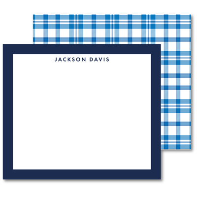 ROYAL BLUE PLAID + NAVY PERSONALIZED FLAT NOTE CARDS | PERSONALIZED FLAT NOTE CARDS