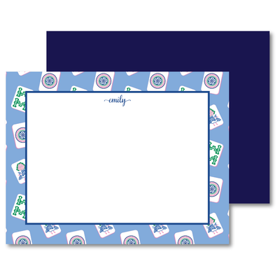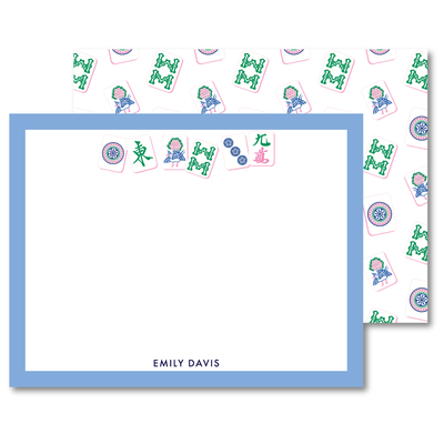 MAHJONG TILES + PERIWINKLE PERSONALIZED FLAT NOTE CARDS | PERSONALIZED FLAT NOTE CARDS