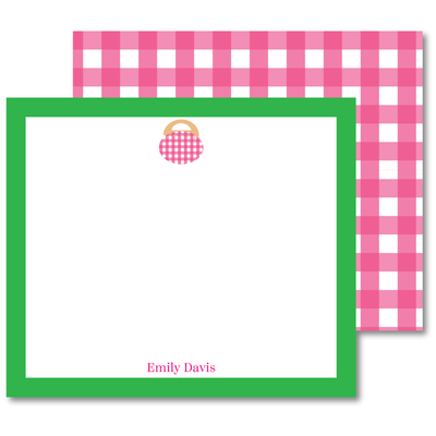 PINK GINGHAM BERMUDA BAG PERSONALIZED FLAT NOTE CARD | PERSONALIZED FLAT NOTE CARDS