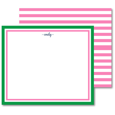 PINK STRIPES + GREEN PERSONALIZED FLAT NOTE CARDS | PERSONALIZED FLAT NOTE CARDS