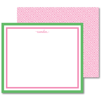 PINK GREEK KEY PERSONALIZED FLAT NOTE CARDS | PERSONALIZED FLAT NOTE CARDS