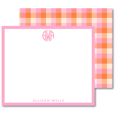 PINK GINGHAM PERSONALIZED FLAT NOTE CARDS | PERSONALIZED FLAT NOTE CARDS