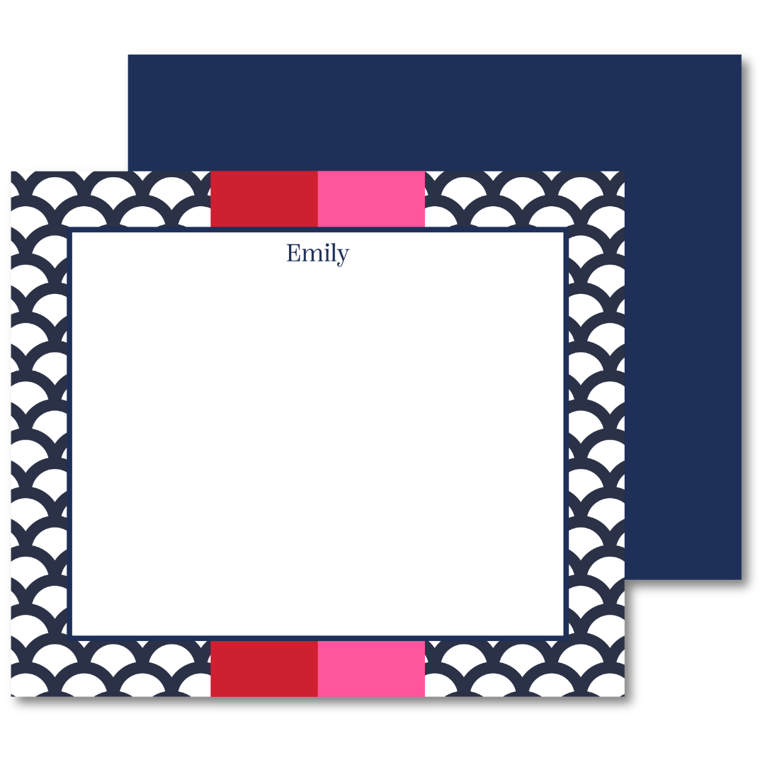 NAVY SCALLOPS + STRIPES PERSONALIZED FLAT NOTE CARDS | PERSONALIZED FLAT NOTE CARDS