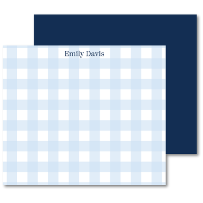 CAROLINA BLUE GINGHAM + NAVY PERSONALIZED FLAT NOTE CARDS | PERSONALIZED FLAT NOTE CARDS