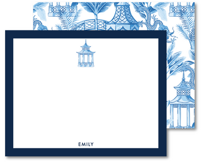 BLUE PAGODA PERSONALIZED FLAT NOTE CARDS | PERSONALIZED FLAT NOTE CARDS