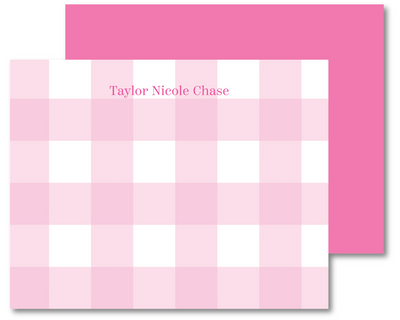 PINK ON PINK GINGHAM PERSONALIZED FLAT NOTE CARDS | PERSONALIZED FLAT NOTE CARDS