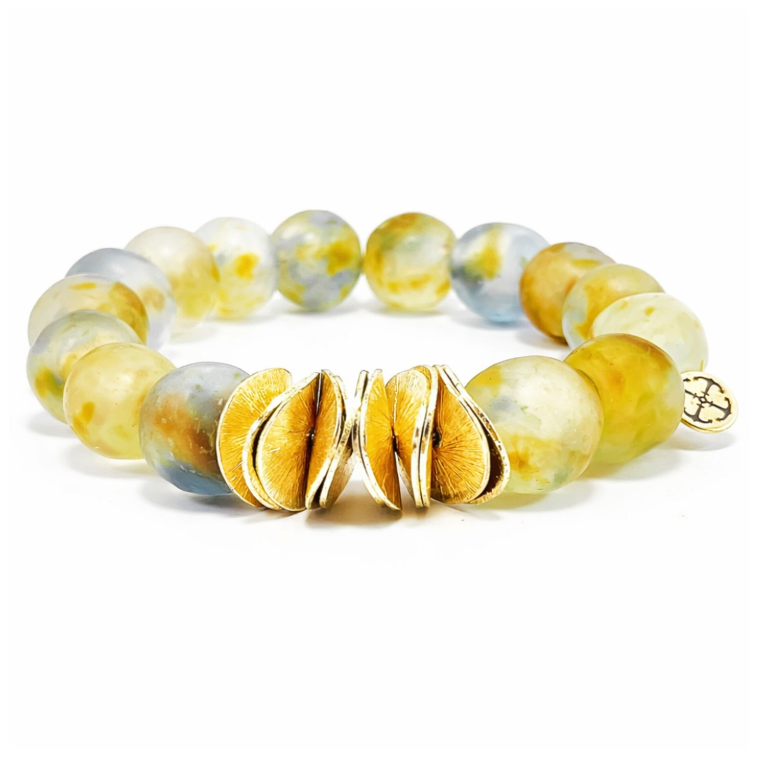 Each bracelet is one of a kind, with subtle variations inherent to recycled glass